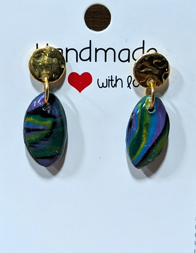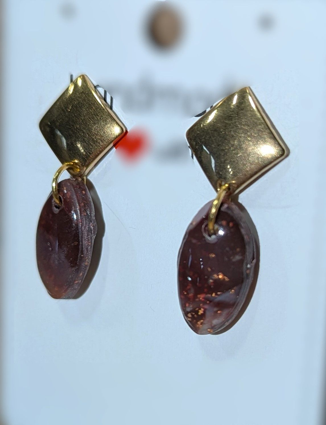 Boucles d'oreilles artisanal en pâte polymère, le tout recouvert de résine.