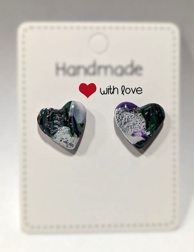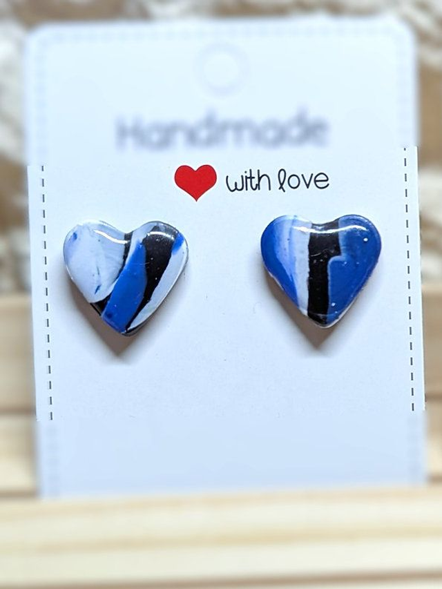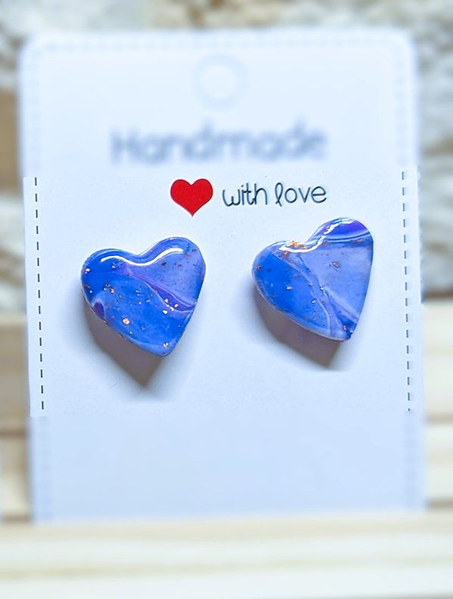 Boucles d'oreilles faites main en pâte polymère, le tout protégé par une couche de résine qui apporte éclat et profondeur.
