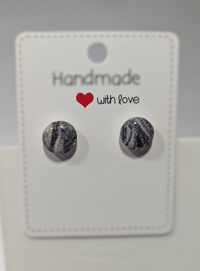 Boucles d'oreilles faites main en pâte polymère, le tout protégé par une couche de résine qui apporte éclat et profondeur.