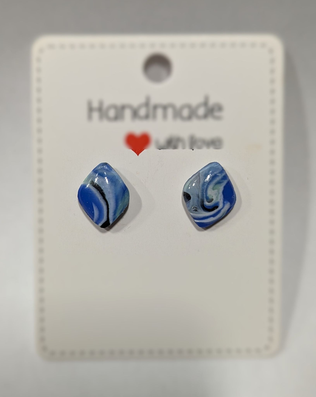 Boucles d'oreilles faites main en pâte polymère, le tout protégé par une couche de résine qui apporte éclat et profondeur.