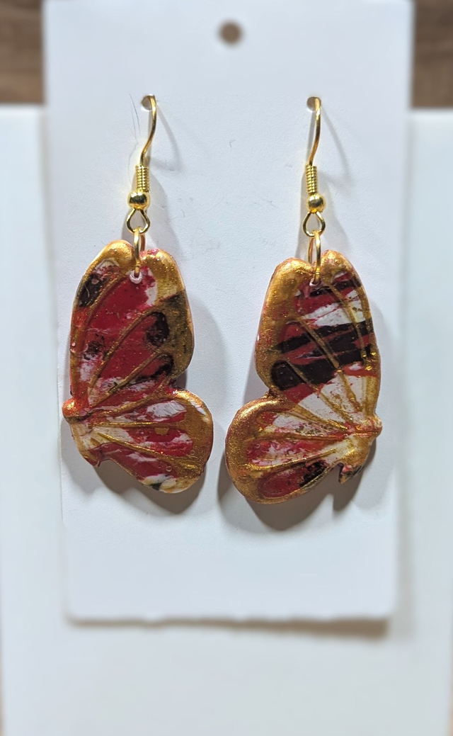 Boucles d'oreilles faites main en pâte polymère, le tout protégé par du vernis qui apporte éclat et profondeur.