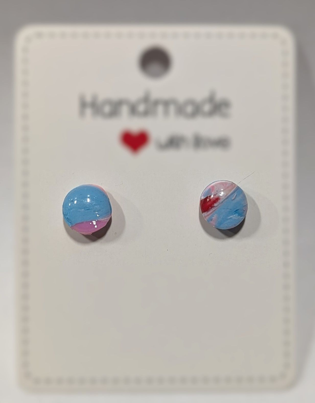Boucles d'oreilles faites main en pâte polymère, le tout protégé par une couche de résine qui apporte éclat et profondeur.