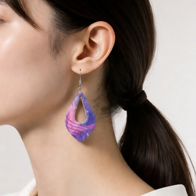 Parure de boucles d'oreilles et pendentif fait main en pâte polymère.