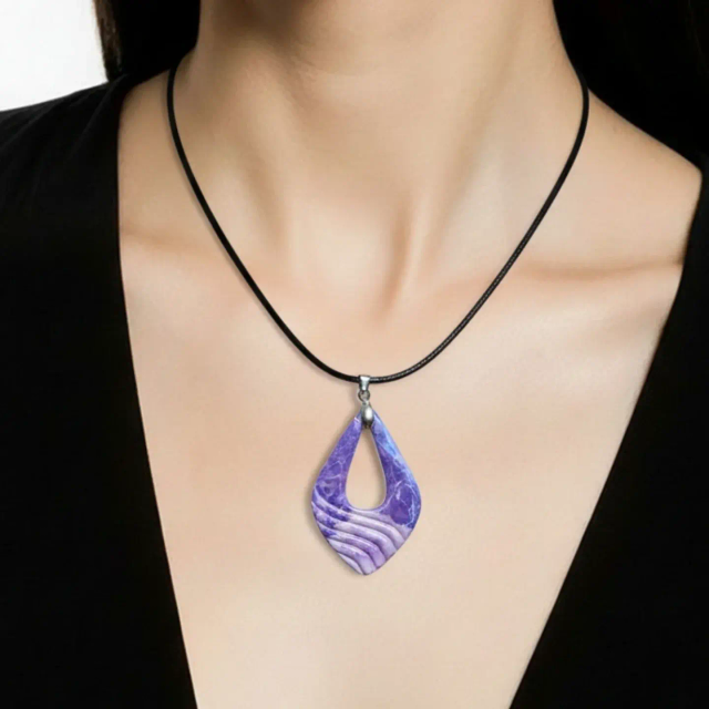 Son motif nébuleux associe des tons bleus, violets, du blanc et une légère note de feuille d'or, le tout protégé par une couche de résine qui apporte éclat et profondeur.